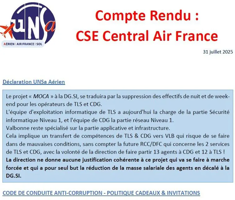 Compte-rendu du CSE Central d'Air France du 26 juin 2025