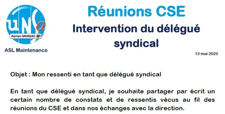 Réunions CSE - Intervention du DS UNSa Aérien