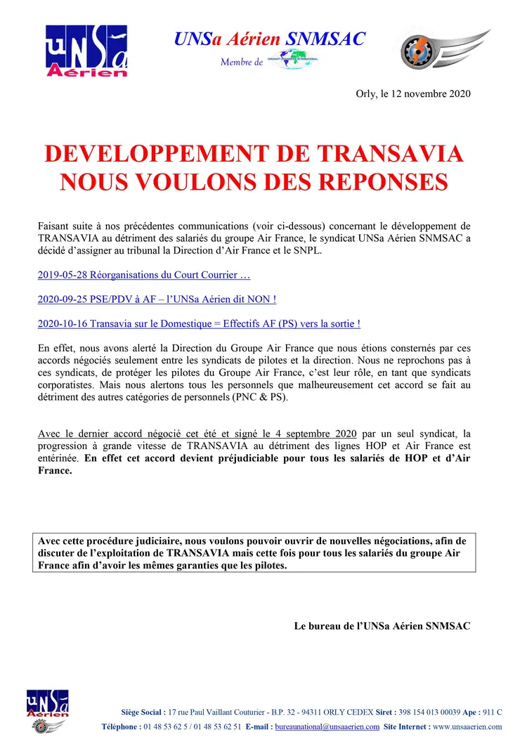 DEVELOPPEMENT DE TRANSAVIA NOUS VOULONS DES REPONSES